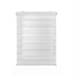 Tenda a rullo doppia a strisce trasparenti il cui movimento verticale offre un gioco di luce decorativo e pratico, nonché il controllo della vista esterna e della privacy.