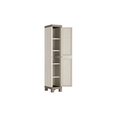 Armadietto slim in resina ad 1 anta Excellence con 4 ripiani regolabili: pensato per chi ha spazi ristretti come sottotetti, terrazze e sottoscale ed ha bisogno di sfruttarli al massimo. Una buona portata per ripiano (12 kg) e la versatitlià d'uso lo rendono perfetto per diversi tipi di ambienti.