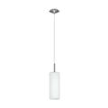 Ha un paralume pendente cilindrico in vetro bianco satinato dalle linee essenziali.